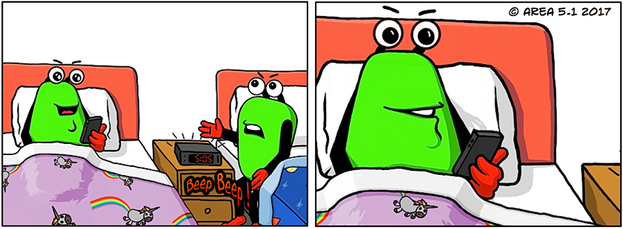 The drawing difference is subtle, the main change is the way that the LGM with the phone tries to hide the real reason why he keeps setting the alarm.